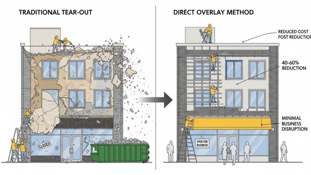 Retrofit facades using a direct overlay method attack the largest line items in a renovation budget: demolition and business downtime. Traditional tear-out approaches inflate project costs by 40–60% with labor and waste disposal fees, forcing revenue-generating businesses like hotels and retail stores to close and compounding the financial impact. This analysis examines the technical requirements […]